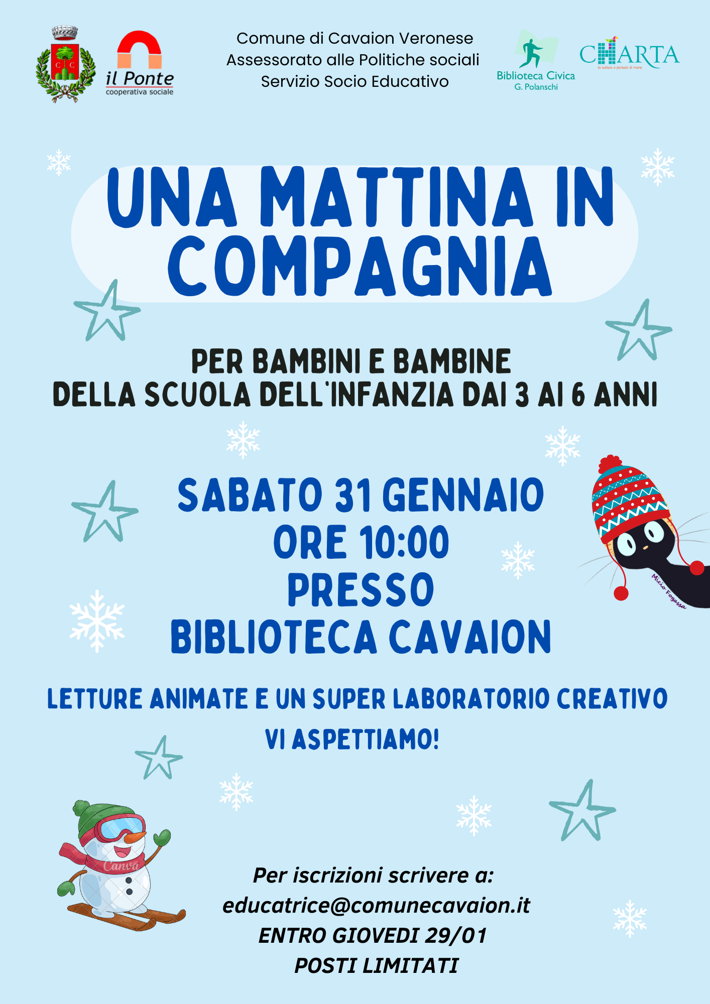 ✉️ Iscrizioni: educatrice@comunecavaion.it